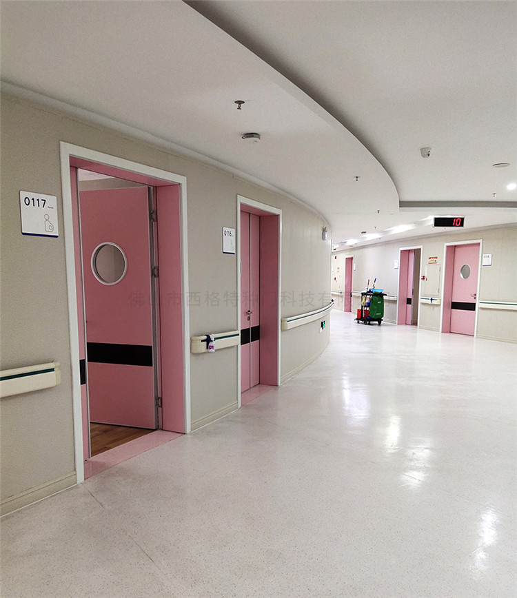 西格在中山大學(xué)附屬第五醫(yī)院醫(yī)療空間解決方案中,在滿足醫(yī)療空間基礎(chǔ)功能上,充分發(fā)揮西格木質(zhì)門的特性,多次與設(shè)計(jì)師溝通,最終確定暖心粉為主色調(diào)的醫(yī)院門設(shè)計(jì),打造治愈系的醫(yī)療色彩空間;