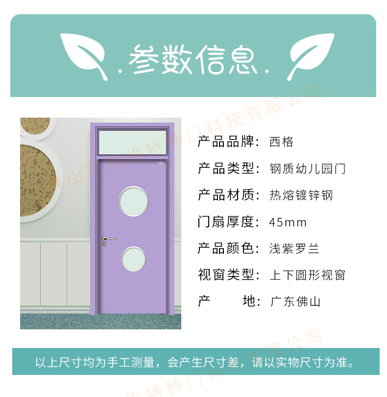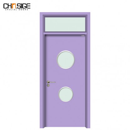 鋼質幼兒園門-帶亮窗-上下圓視窗-淺紫羅蘭